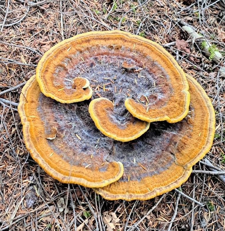 Courtenay-based fibre artist and mushroom forager Amy Crook generously shares her knowledge of dyeing with materials we can find in our Fibreshed region. In this article, she explores Phaeolus schweinitzii, aka Dyer’s Polypore, and the beautiful colours they can provide.