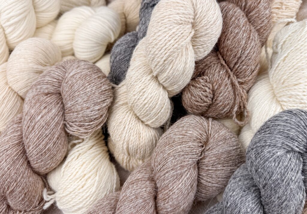 Beehive Wool Shop stocks a selection of Vancouver Island Fibreshed yarns often carrying yarn from Hinterland Yarn (Pender Island) and New Wave Fibre (Thetis Island).