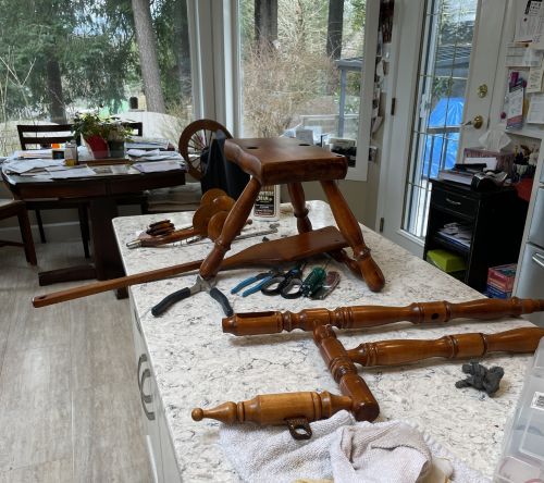 Repairs and wooden parts for spinning wheels and tools (bobbins, flyer repairs lazy Kate’s, leather bearing etc.) Woodturner and experienced spinner. We sell restored spinning wheels rescued from estates, thrift and dump potential. We repair we are not a dealer…